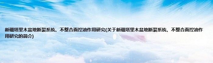 本文关于新疆塔里木盆地断裂系统、不整合面控油作用研究的简介就讲解完毕,希望对大家有所帮助。
