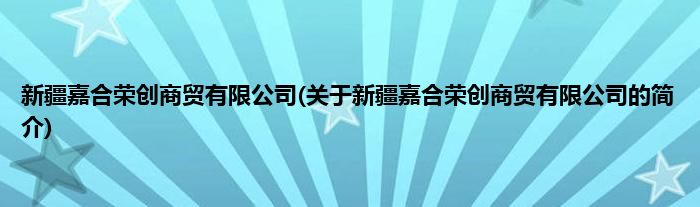 本文关于新疆嘉合荣创商贸有限公司的简介就讲解完毕,希望对大家有所帮助。