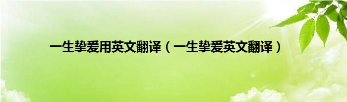 大家好,小问来为大家解答以上问题。一生挚爱用英文翻译,一生挚爱英文翻译这个很多人还不知道,现在让我们一起来看看吧!