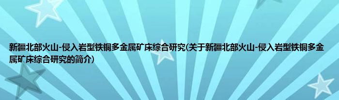 大家好,新疆北部火山-侵入岩型铁铜多金属矿床综合研究,关于新疆北部火山-侵入岩型铁铜多金属矿床综合研究的简介很多人还不知道,现在让我们一起来看看吧!