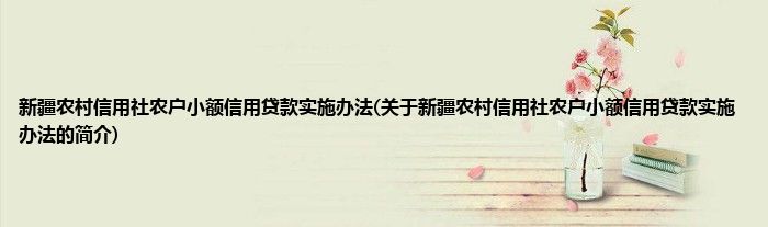 本文关于新疆农村信用社农户小额信用贷款实施办法的简介就讲解完毕,希望对大家有所帮助。