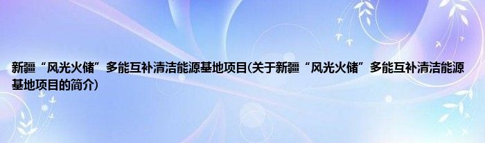 本文关于新疆“风光火储”多能互补清洁能源基地项目的简介就讲解完毕,希望对大家有所帮助。