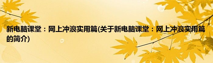 本文关于新电脑课堂:网上冲浪实用篇的简介就讲解完毕,希望对大家有所帮助。