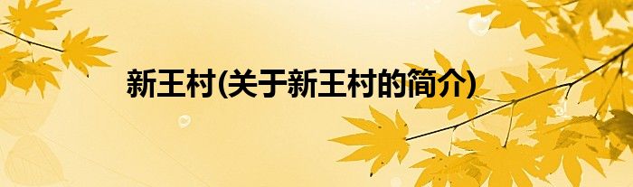 本文关于新王村的简介就讲解完毕,希望对大家有所帮助。