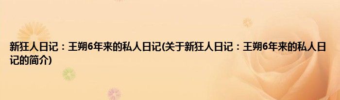 大家好,新狂人日记:王朔6年来的私人日记,关于新狂人日记:王朔6年来的私人日记的简介很多人还不知道,现在让我们一起来看看吧!