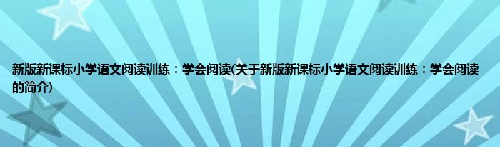 新版新课标小学语文阅读训练:学会阅读(关于新版新课标小学语文阅读训练:学会阅读的简介)