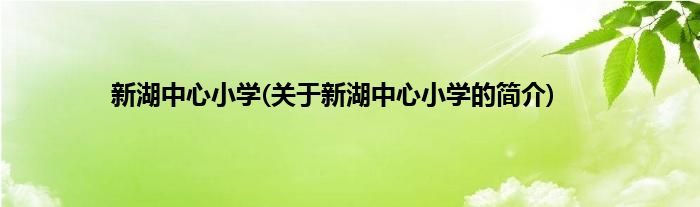 本文关于新湖中心小学的简介就讲解完毕,希望对大家有所帮助。