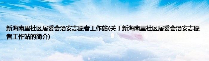 本文关于新海南里社区居委会治安志愿者工作站的简介就讲解完毕,希望对大家有所帮助。