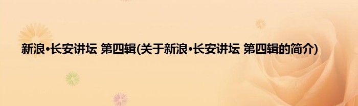 本文关于新浪·长安讲坛。第四辑的简介就讲解完毕,希望对大家有所帮助。