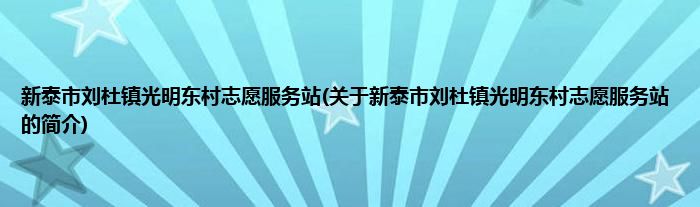大家好,新泰市刘杜镇光明东村志愿服务站,关于新泰市刘杜镇光明东村志愿服务站的简介很多人还不知道,现在让我们一起来看看吧!