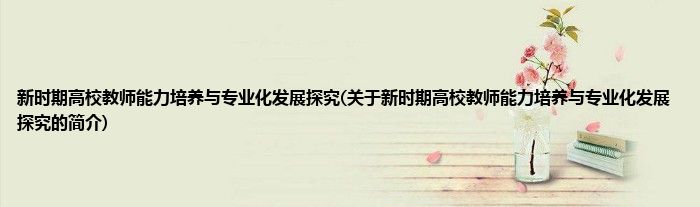 新时期高校教师能力培养与专业化发展探究(关于新时期高校教师能力培养与专业化发展探究的简介)
