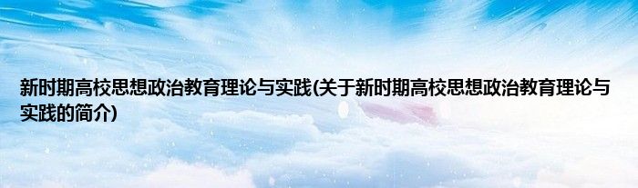 本文关于新时期高校思想政治教育理论与实践的简介就讲解完毕,希望对大家有所帮助。