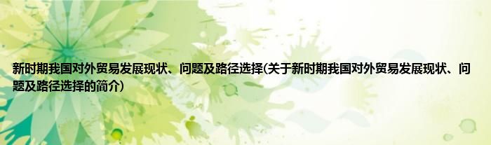 大家好,新时期我国对外贸易发展现状、问题及路径选择,关于新时期我国对外贸易发展现状、问题及路径选择的简介很多人还不知道,现在让我们一起来看看吧!