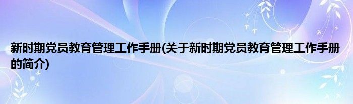 大家好,新时期党员教育管理工作手册,关于新时期党员教育管理工作手册的简介很多人还不知道,现在让我们一起来看看吧!