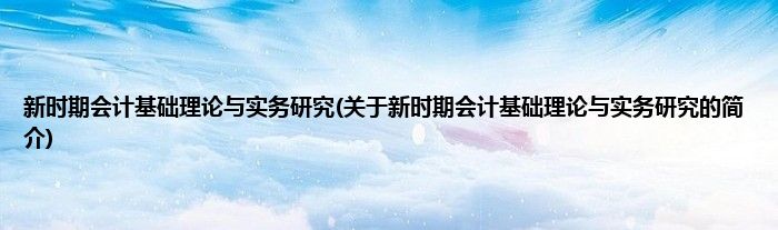 新时期会计基础理论与实务研究(关于新时期会计基础理论与实务研究的简介)