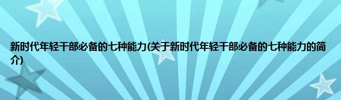 本文关于新时代年轻干部必备的七种能力的简介就讲解完毕,希望对大家有所帮助。