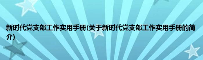 大家好,新时代党支部工作实用手册,关于新时代党支部工作实用手册的简介很多人还不知道,现在让我们一起来看看吧!