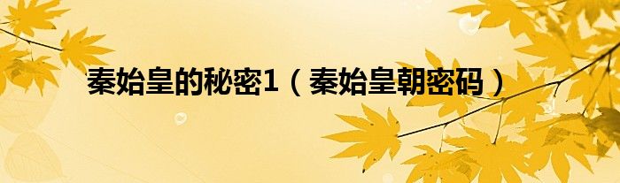 大家好,小问来为大家解答以上问题。秦始皇的秘密1,秦始皇朝密码这个很多人还不知道,现在让我们一起来看看吧!