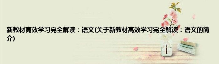本文关于新教材高效学习完全解读:语文的简介就讲解完毕,希望对大家有所帮助。