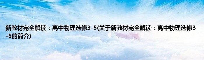 本文关于新教材完全解读:高中物理选修3-5的简介就讲解完毕,希望对大家有所帮助。