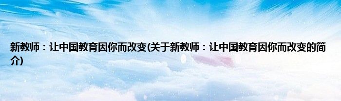 大家好,新教师:让中国教育因你而改变,关于新教师:让中国教育因你而改变的简介很多人还不知道,现在让我们一起来看看吧!