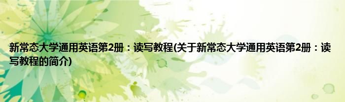 本文关于新常态大学通用英语第2册:读写教程的简介就讲解完毕,希望对大家有所帮助。