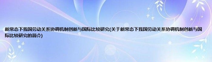 大家好,新常态下我国劳动关系协调机制创新与国际比较研究,关于新常态下我国劳动关系协调机制创新与国际比较研究的简介很多人还不知道,现在让我们一起来看看吧!