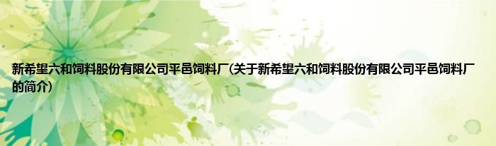 本文关于新希望六和饲料股份有限公司平邑饲料厂的简介就讲解完毕,希望对大家有所帮助。