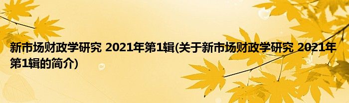 本文关于新市场财政学研究 2021年第1辑的简介就讲解完毕,希望对大家有所帮助。