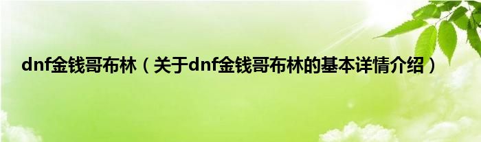 本文关于dnf金钱哥布林的基本详情介绍就讲解完毕,希望对大家有所帮助。