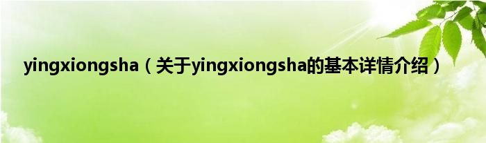 本文关于yingxiongsha的基本详情介绍就讲解完毕,希望对大家有所帮助。