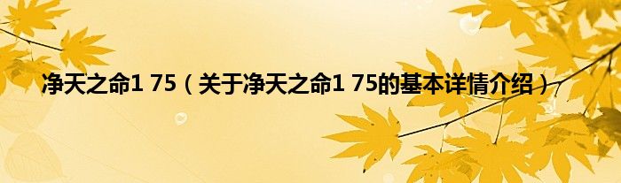 本文关于净天之命1 75的基本详情介绍就讲解完毕,希望对大家有所帮助。