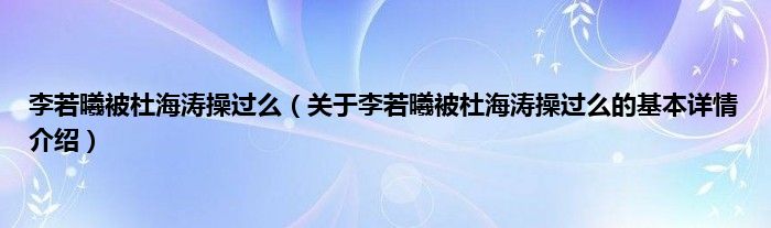 本文关于李若曦被杜海涛操过么的基本详情介绍就讲解完毕,希望对大家有所帮助。