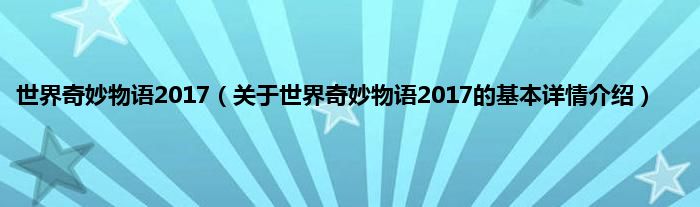 本文关于世界奇妙物语2017的基本详情介绍就讲解完毕,希望对大家有所帮助。