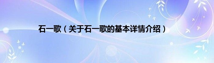大家好我是小蝌蚪,石一歌,关于石一歌的基本详情介绍很多人还不知道,那么现在让我们一起来看看吧!