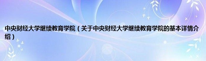 本文关于中央财经大学继续教育学院的基本详情介绍就讲解完毕,希望对大家有所帮助。