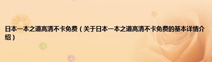 本文关于日本一本之道高清不卡免费的基本详情介绍就讲解完毕,希望对大家有所帮助。