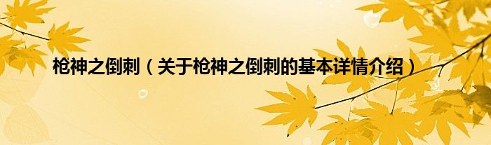 本文关于枪神之倒刺的基本详情介绍就讲解完毕,希望对大家有所帮助。