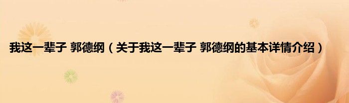 本文关于我这一辈子 郭德纲的基本详情介绍就讲解完毕,希望对大家有所帮助。