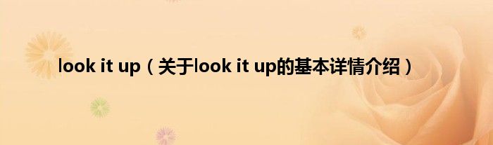 本文关于look it up的基本详情介绍就讲解完毕,希望对大家有所帮助。