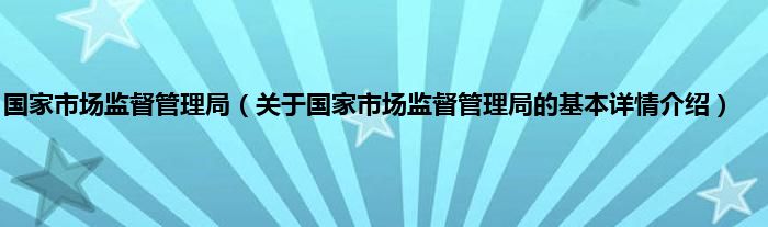 本文关于国家市场监督管理局的基本详情介绍就讲解完毕,希望对大家有所帮助。