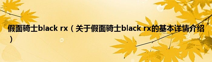 本文关于假面骑士black rx的基本详情介绍就讲解完毕,希望对大家有所帮助。