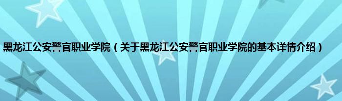 本文关于黑龙江公安警官职业学院的基本详情介绍就讲解完毕,希望对大家有所帮助。