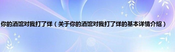 本文关于你的酒馆对我打了烊的基本详情介绍就讲解完毕,希望对大家有所帮助。
