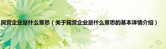 本文关于民营企业是什么意思的基本详情介绍就讲解完毕,希望对大家有所帮助。