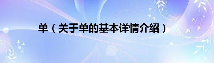 本文关于单的基本详情介绍就讲解完毕,希望对大家有所帮助。