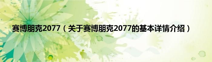 本文关于赛博朋克2077的基本详情介绍就讲解完毕,希望对大家有所帮助。