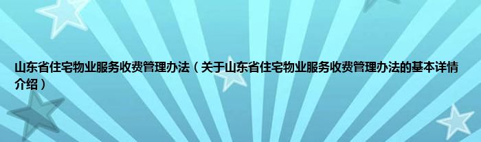本文关于山东省住宅物业服务收费管理办法的基本详情介绍就讲解完毕,希望对大家有所帮助。