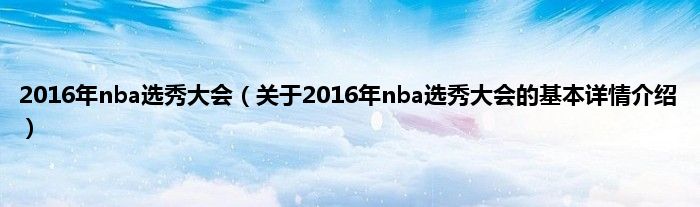 本文关于2016年nba选秀大会的基本详情介绍就讲解完毕,希望对大家有所帮助。