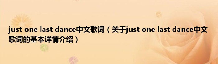 本文关于just one last dance中文歌词的基本详情介绍就讲解完毕,希望对大家有所帮助。
